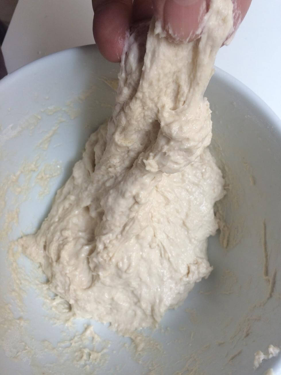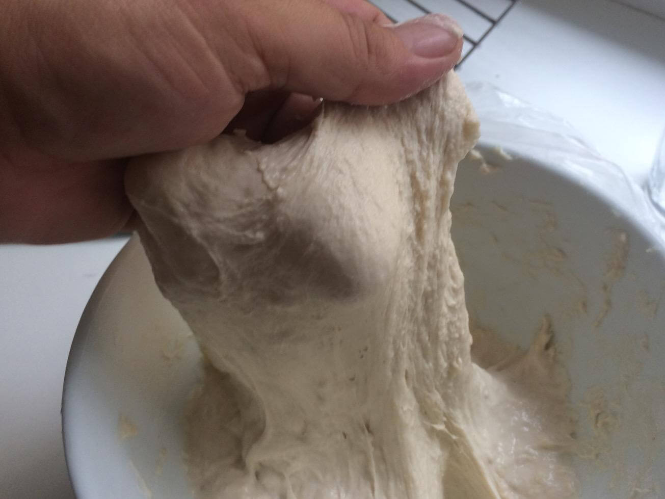 E realmente é muito diferente das "00" e da Ecobio que eu vinha usando. Já de cara deu pra notar a "força" e a "sede" da farinha. O glúten parece que quer se formar. Fiz um pão com 70% de hidratação, que era o que eu vinha usando com as outras pra manter a comparação, mas deu pra ver que era pouca água pra essa farinha.