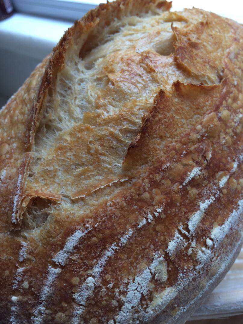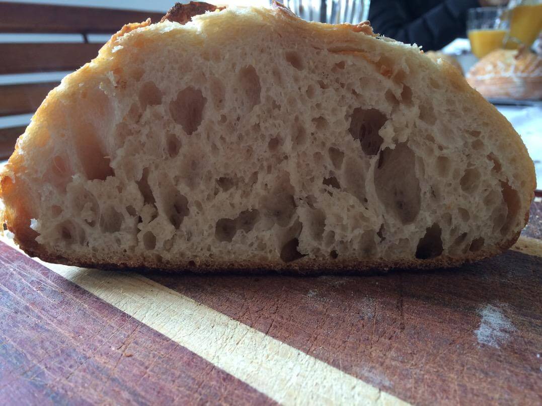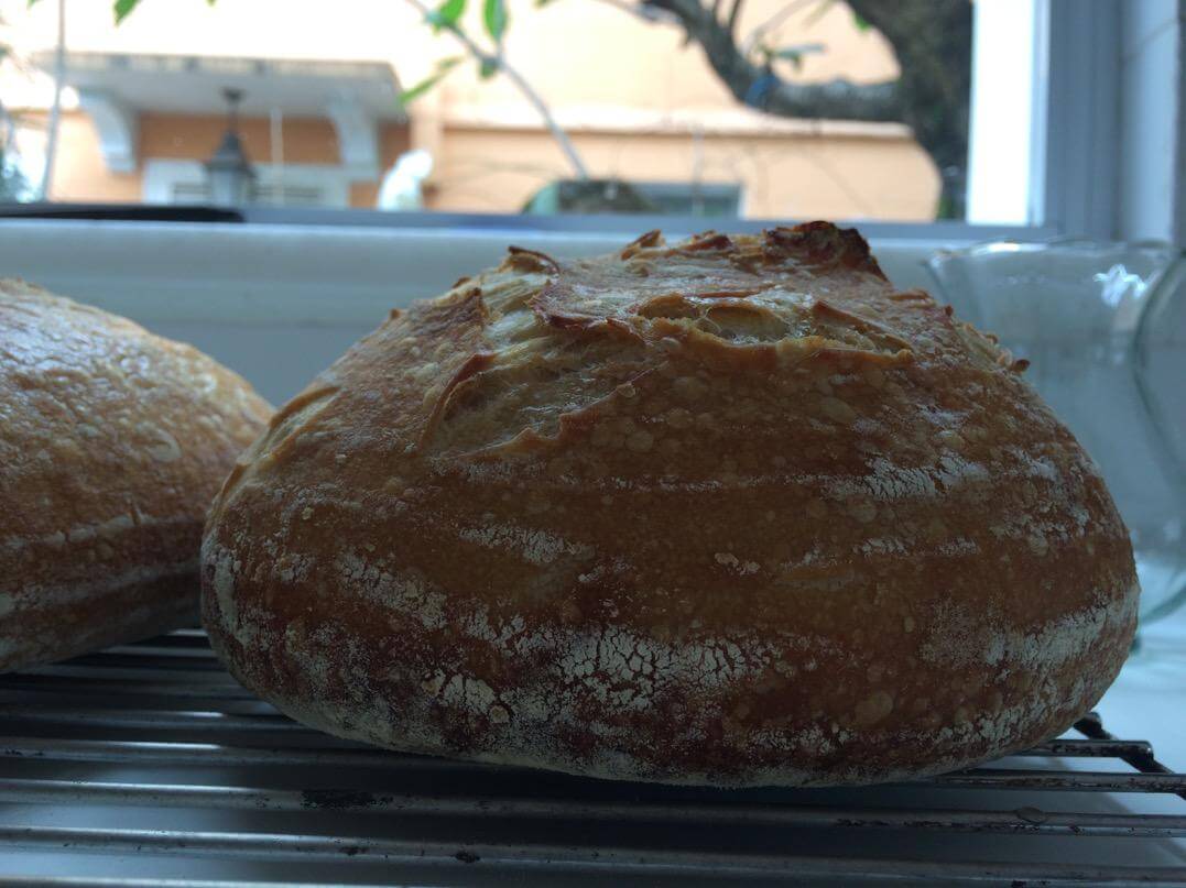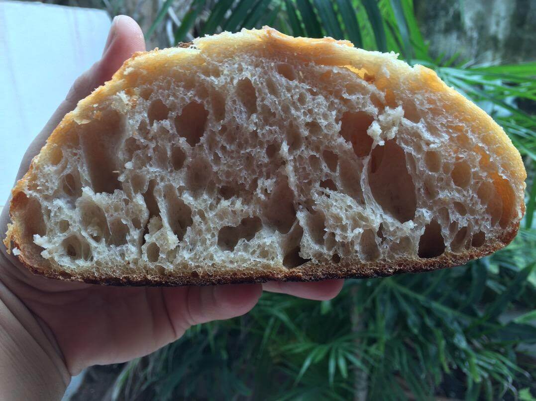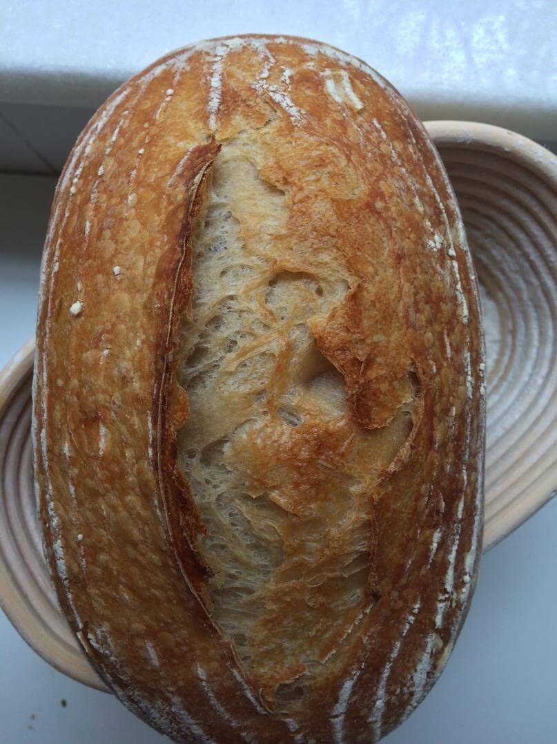 O pão que eu fiz com a farinha brasileira (para bolo) saiu melhor, mas o levain foi ativado com a farinha de centeio.