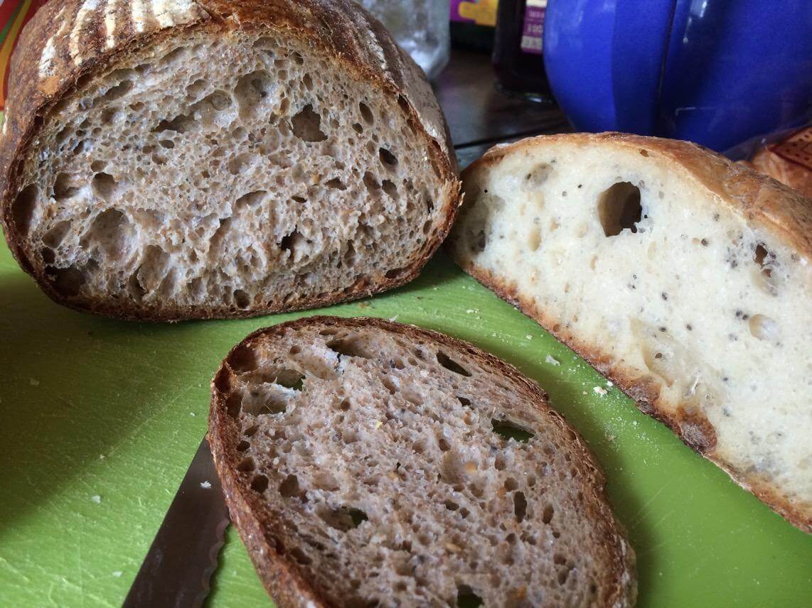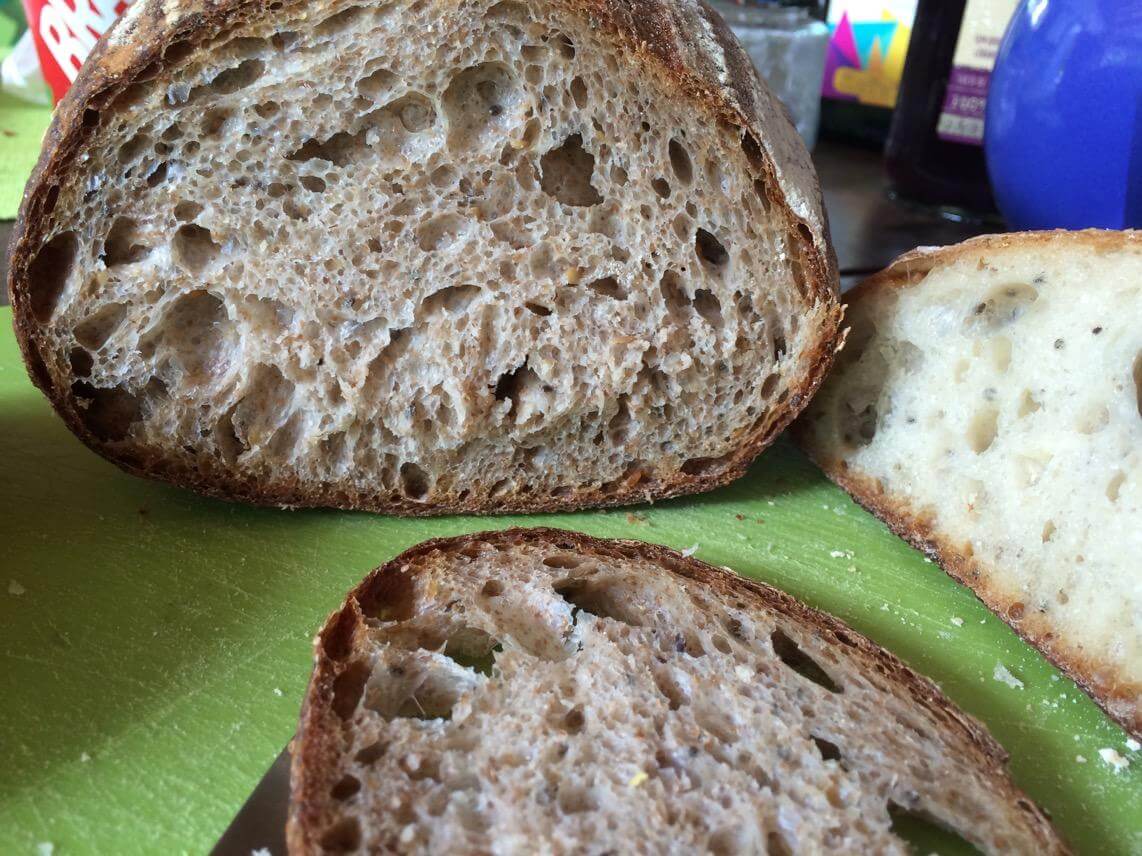 E o miolo ficou bem aberto pra um pão integral com sementes.